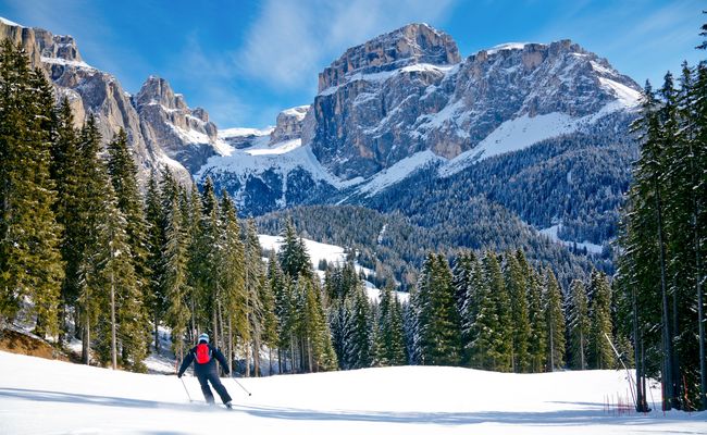 Um zurück ins Grödner Tal zu gelangen, steigst du in Corvara in den Borest-Lift nach Kolfuschg (Colfosco). Weitere Aufstiegsanlagen bringen dich bis zum Grödner Joch hinauf, von wo aus es eine letzte herrliche Abfahrt bis hinunter nach Wolkenstein zu genießen gilt.